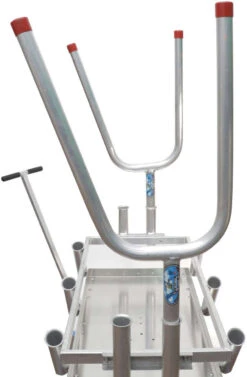 The Alumacart SUP/Kayak/Surfboard Holders – Pair is the ideal accessory for any surfing or paddle board enthusiast. Holders are fabricated with heavy duty aluminum and sold as a pair. Ideal for SUP’s, surfboards, kayaks, etc. The center post and both uprights are fabricated using 1 3/4” round aluminum pipe which slides into any Alumacart rod holder. Rod holders will be needed on the front and rear of your wagon to accommodate the SUP Holders.