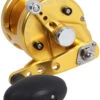 The Penn Warfare Level Wind Reels were engineered to be an all around reel that is versatile and of course at a great price. These reels feature a lightweight graphite frame and sideplates with aluminum frame rings for improved rigidity to prevent frame-flex. The HT-100 carbon fiber drag washers provide smooth drag under heavy loads. No need to question how much line you have left when fighting a fish, the line capacity rings answers this for you.
